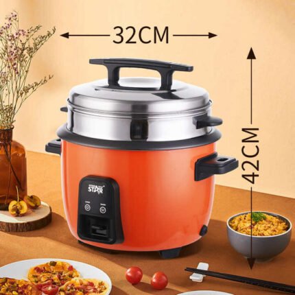 - Fonctions : Cuiseur à riz, cuiseur vapeur et multicuiseur (viande, poulet, poisson, légumes, etc.).