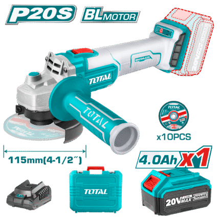 Meuleuse Sans Fil TOTAL 20V – Brushless 115mm 4.0Ah
